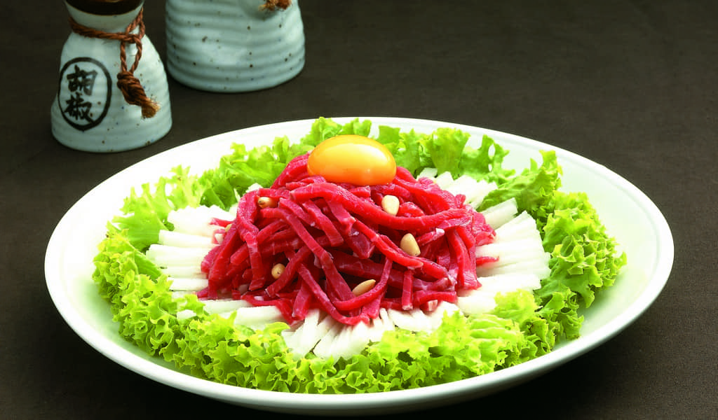 Different regions have slightly different additives for seasoning, with pine nuts and egg yolks. Young children often like yukhoe made from the best cuts of beef because it has a soft texture, no spicy seasoning, and no real taste of raw meat.