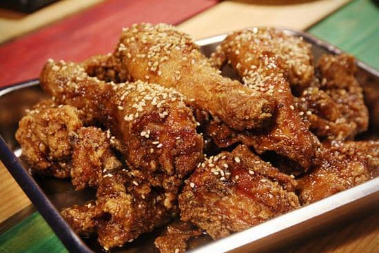 Add soy sauce to fried chicken and stir-fry once more. It's not like just putting soy sauce into the frying pan. It is made by adding sugar and garlic, and tastes similar to Teriyaki.
