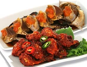 Yangnyum or ganjang gaejang is a Korean seafood cuisine which is made by marinating fresh raw crabs either in soy sauce or in gochujang (hot pepper paste). The term consists of the two words; gae, meaning crab, and jang which means condiment in Korean. Although gaejang originally referred only to crabs marinated in soy sauce, it has begun to be called ganjang gaejang these days to differentiate it from yangnyum gaejang. To prepare, crabs are first thoroughly cleaned using a brush while submerged in a bowl of cold water and then rinsed thoroughly to remove the excess fishy smell. For its sauce, a mixture of soy sauce is boiled briefly along with sesame oil, lemon, sugar, finely sliced scallions, minced garlic, ginger, and finely shredded chili peppers. The hot soy sauce is poured onto the crabs in a large bowl and then cooled -- this step may be repeated multiple times by draining, re-boiling and re-pouring the sauce sauce content to enhance its flavor. As for yangnyum gaejang, raw crabs are marinated with a mixture of gochujang sauce, ground Korean pear, onions, ginger and garlic, sesame seeds, and sesame oil. For optimal taste, marination should be for half a day to 3 full days to have its spicy, sweet and sour taste get fully intact to crab meat. Fact: Jeju Island is famous for their own signature gaejang dish.