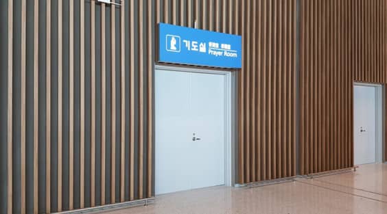 There are four prayer areas in Incheon Airport - Near Gate 24 on 3F, Terminal 1, East of 4F, Concourse, East of Transportation Center 1BF and Center of Duty-free Area 4F, Terminal 2