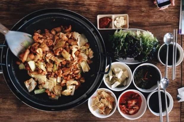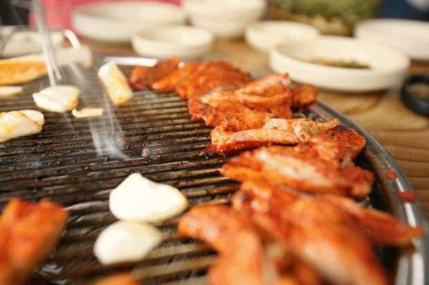 If you’re visiting Nami Island, you have to make a (side) trip to Namiok for halal Dakgalbi 닭갈비 (Korean spicy stir-fried chicken)! Just picture stir-fried chicken marinated with gochujang 고추장 (red pepper paste) along with sliced cabbage, tteokbokki 떡볶이 (Korean rice cakes) and rice served on a sizzling hot plate! That’s enough to make us want to fly to Korea this minute!