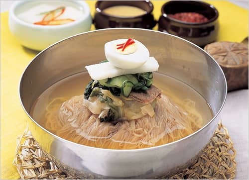 It has been 40 years since this restaurant opened its doors under the name Nampo Myeonok (남포면옥) and became one of the traditional restaurants as designated by the Seoul City Government. Thin strips of beef and vegetables, cold noodles, and dumpling soup in Pyeongan-do style with little white radish kimchi are said to be the best dishes of Nampo Myeonok. As old as this restaurant is, the taste of the food is very rich and keeps a steady stream of satisfied customers.