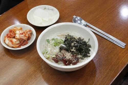 The name of this restaurant means “grandma’s noodle soup.” Opened in 1958, the restaurant serves guksu made from a traditional recipe handed down to grandma’s daughters. While the restaurant looks like an ordinary snack bar, it attracts crowds of customers because of the wonderful flavor of its guksu. The secret lies in a mouthwatering, delicately spiced seafood broth, as well as tender, hand-made noodles and mildly flavored tofu. A bowl of guksu is the perfect snack, and the service is also great.