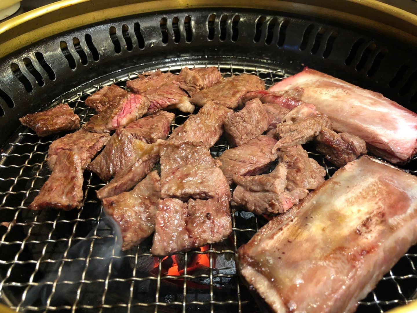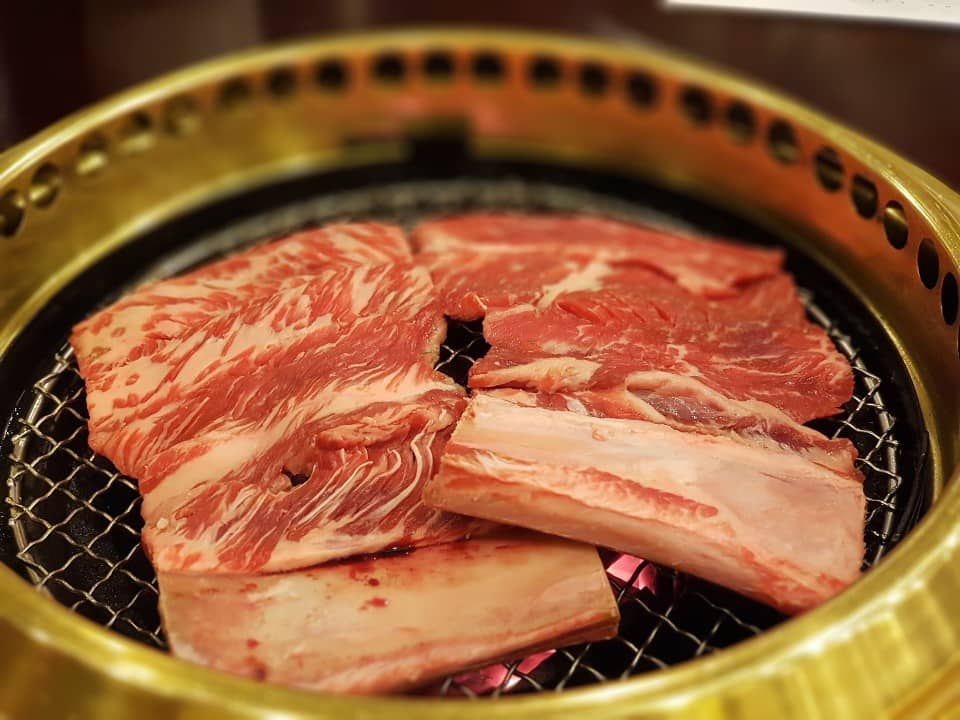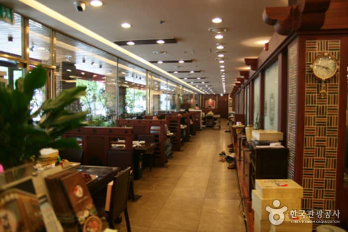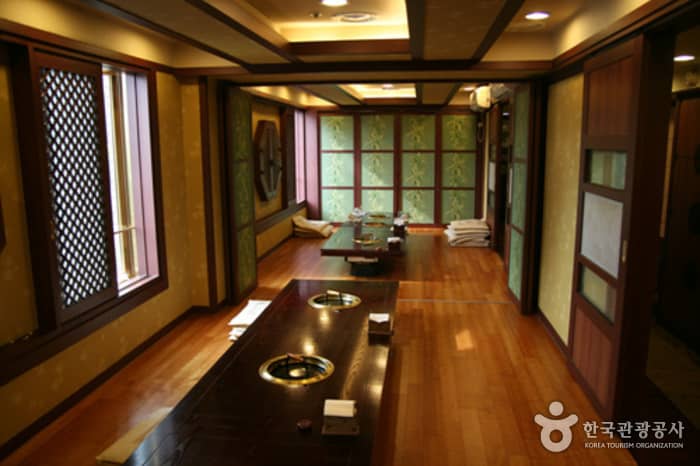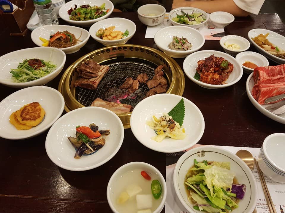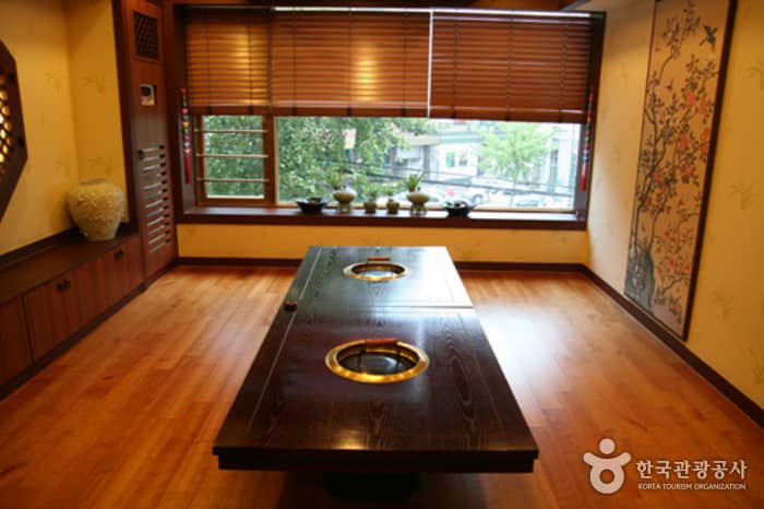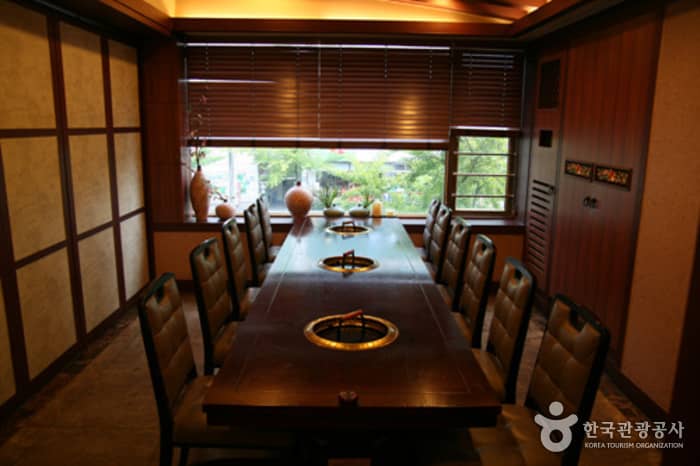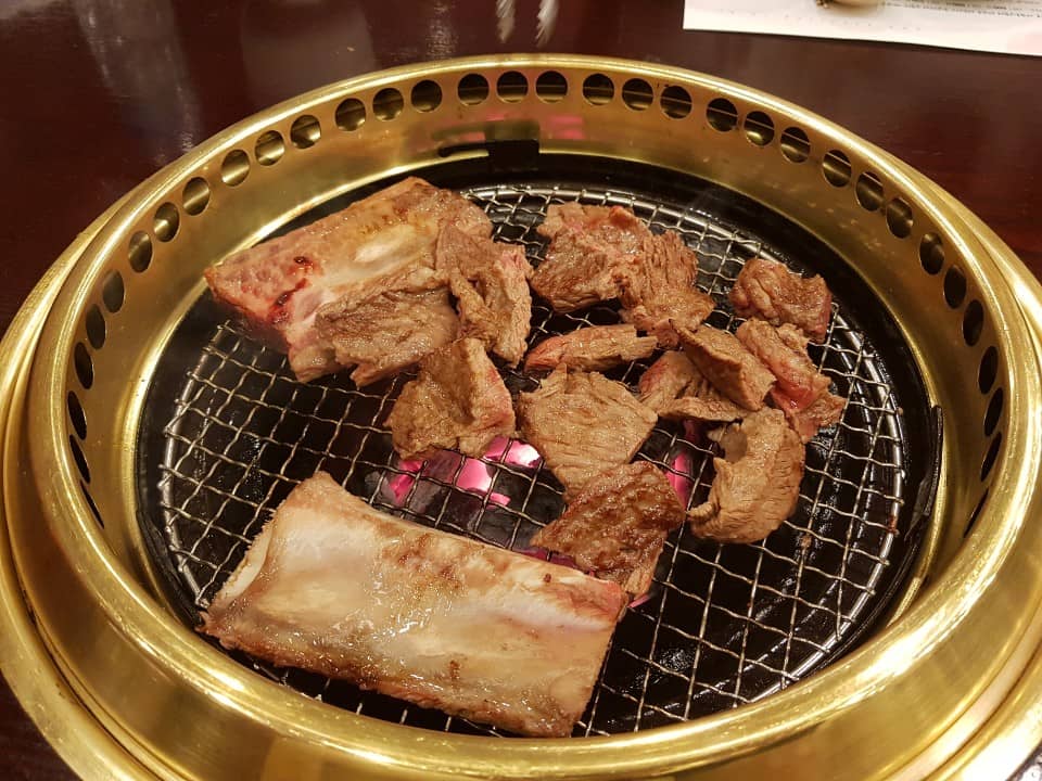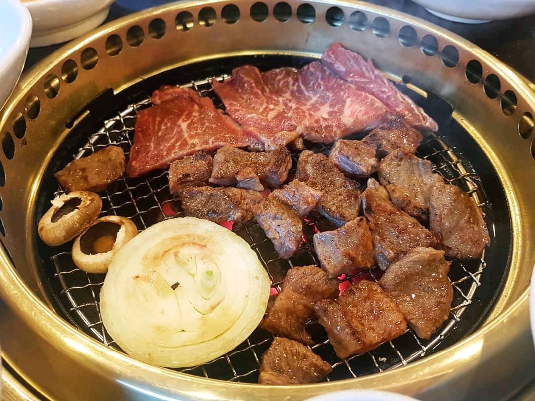Quality Korean beef is cut into bite-size pieces before being marinated in a mixture of salt, pepper, and garlic. The beef is grilled on charcoal to drain the fat and make the beef juicier. It is served with a number of small and savory side dishes like spicy cabbage (kimchi), Korean sweet pumpkin pancake (jeon), and others.