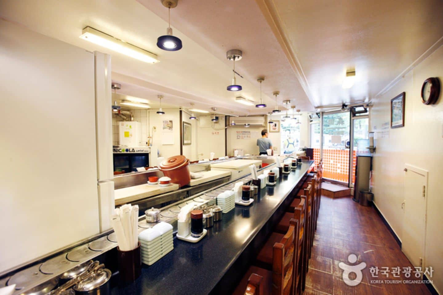 At Samjeon Hoejeon Chobap, you can sit back and relax as fresh sushi dishes such as eel sushi, tuna sushi, salmon sushi, and shrimp sushi come by you on the conveyor belt. The system allows you to avoid waiting for food and pick and choose your favorite dishes. Sushi dishes are made of fresh fish delivered daily so you can rest assured that you’re eating only top quality sushi.The restaurant is conveniently located in central Seoul in the Gwanghwamun area near major landmarks such as City Hall, the Sejong Center for the Performing Arts, and Cheonggyecheon, making the restaurant a convenient stopover during a busy day of touring.