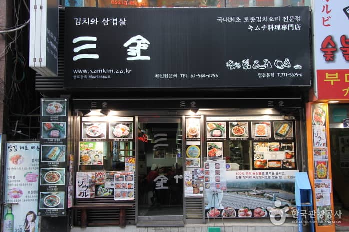 Following extensive years in researching about kimchi and its scientific benefits, Samkim has succeeded in producing its own unique brand of kimchi that is unique in flavor and quality. Many dishes at the Samkim restaurant combine kimchi and pork belly ('samgyeopsal' in Korean) since kimchi researchers found that the two foods seem to complement each other perfectly (hence, the name was made combining the two words' first syllable). According to researchers’ findings, kimchi raises your metabolism rate slightly as you eat, reducing the amount of fat that the body takes in while eating the pork belly. To apply its kimchi findings, Samkim opened restaurants all across the country, starting with its flagship restaurant in Myeong-dong. Some of the most popular dishes among both foreign and local diners are the kimchi stew, kimchi pancake and rolled kimchi.