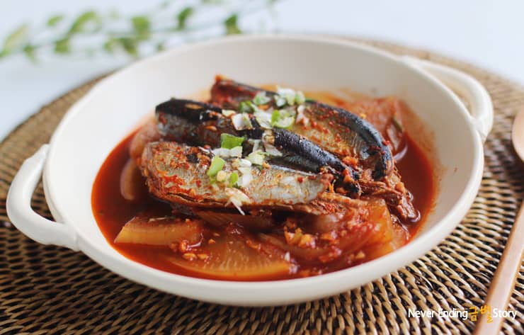 A dish that every Korean has tasted at least once in their lives, Mackeral Pike and various vegetables are seasoned with red pepper powder and can be easily cooked at home.
