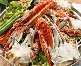 Koatgaetang is a hot spicy crab stew that is unforgettably refreshing in taste. Boiled with gochujang (red chili pepper paste), gochugaru (red chili pepper flakes) and various vegetables, this stew is very popular for all spicy food lovers. As its main ingredient, blue crabs are boiled with various vegetables such as chrysanthemum, green onion, radish, chilies, garlic and some times, fresh pumpkin leaves and dwenjang to enhance the main flavoring ingredient of this dish which is gochujang. In addition, other seafood such as clams and shrimps can be added to this stew to compliment with its spicy crabs. What's great about this stew is that frozen crabs, which its flesh is slightly flakier than that of fresh ones, work extremely well. Other crabs that can be used as an alternative to blue crabs are snow and king crabs. Cooking Tip: During summer, female crabs tend to be more expensive than male crabs because of their yellow mustard and eggs. Female crabs can be easily distinguished by their visible white "apron" displayed on their belly side. However, male crabs in the fall, tends to be meatier. At the fish market, the extra-fresh crabs look vivid, lively and ocean-clean fresh. Most crabs with broken limbs are a sign of low quality, so steer away from them. Lastly, crabs are extremely perishable and prone to bacterial contamination so be sure to buy only intact, live ones. RECIPE INGREDIENTS: YIELDS 3-4 SERVINGS 3-4 medium to large blue crabs (fresh or thawed) 6 cups water ¼ small radish 1 small strip of sea kelp or dasima 1 medium zucchini 1 small onion (sliced) 6 green and red chili peppers (sliced) 2 stems green onion (3-4 cm strips) 5 cloves of garlic (chopped) 2 tbsp gochugaru, red chili pepper flakes 1 tbsp gochujang, red chili pepper paste 1 tbsp soy sauce 1 tbsp roasted sesame seeds Dash black pepper Chrysanthemum leaves Fresh pumpkin leaves (optional) 1 tbsp soy bean paste (optional) COOKING DIRECTIONS To make a broth, add sea kelp, radish and soy sauce in six cups of water in a large pot. Scrub crabs and cut into pieces. Cut off the mouth, gills and the end tips of legs and claws with scissors. When the stock boils, add gochugaru, gochujang, garlic and if desired, soy bean paste. Add the crabs and cook for 10 minutes with the cover closed. Add zucchini and onion, and cook for an additional 10 minutes, carefully monitoring the crab. When all shells turn bright orange, add green onion, green and red chili peppers, pumpkin leaves, sesame seeds and black pepper. Chrysanthemum leaves requires minimal cooking, so add this at the very end. Serve with white rice.