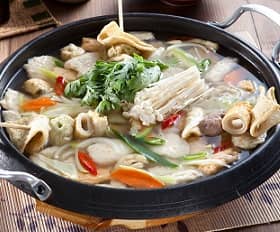 Odengguk is a popular soup made with assortment of fish cakes and anchovy based stock/broth called dashida. Often considered as a comfort meal, it is one of the most popular item sold by street vendors in Korea along with tukbokki, ojinguh tigim, and soondae. Simple and fairly quick to prepare, odeng guk is enjoyed by Koreans especially during the colder seasons and often served by restaurants as a side soup to compliment any meal. Other ingredients can include but not limited to mushrooms, garlic, onions, kelp, radish, green onion, and whole or half boiled egg. Diners may choose to sprinkle gochugaru to add additional kick to the flavor along with a popular dipping sauce made with soy sauce and wasabi to dip fish cakes.