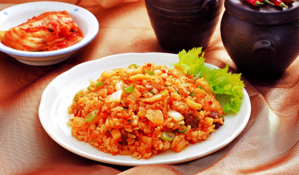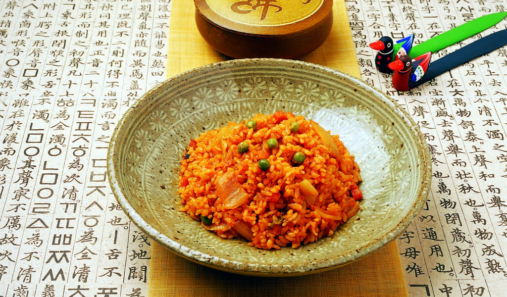 Along side its main ingredient chopped kimchi, this rice dish can also consist of various choices in meat which is then sautéed altogether along other assortment of vegetables such as onions, garlic and bell peppers. There can be infinite variations of this bokumbop dish where beef can be substituted with little bits of galbi, bacon, spam, or even tofu.For added seasoning, soy sauce and sesame oil are added in addition to the leftover kimchi juice. Lastly, an egg is cooked sunny side up and placed on top of this rice dish for taste as well as for decoration.