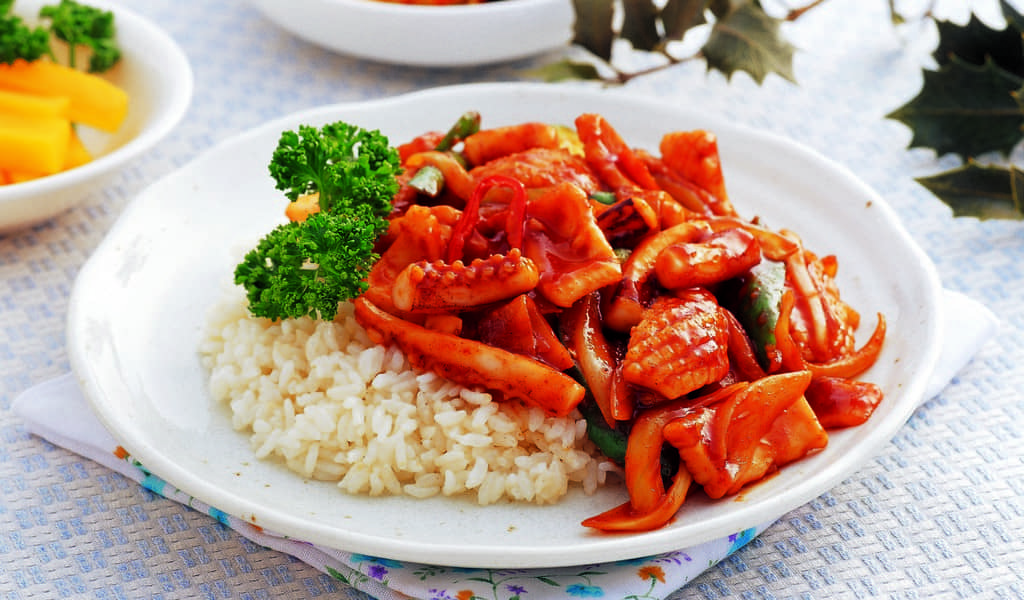 Ojinguh dupbop (Spicy Squid Over Rice )