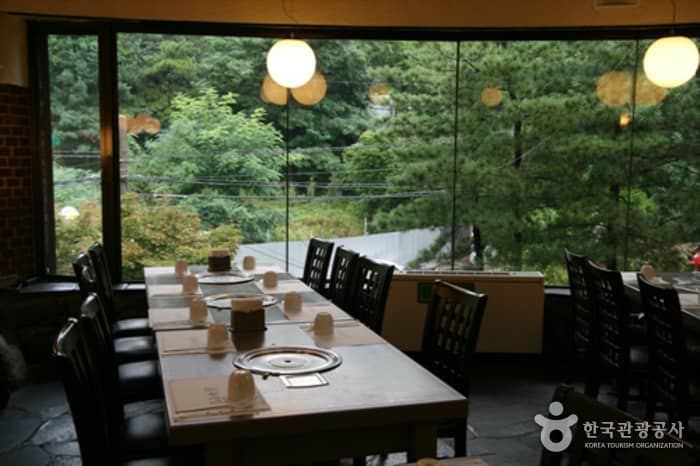 The restaurant is a virtual garden paradise located in the middle of the city. The restaurant has been known for its marinated galbi (served with a wide variety of side dishes) since the beginning of its impressive 27-year history. For the comfort of its diners, the grounds also include a free lounge.- Located near Bukhansan National Park (3 minutes by car and 15 minutes on foot.)