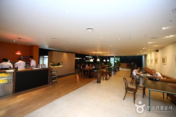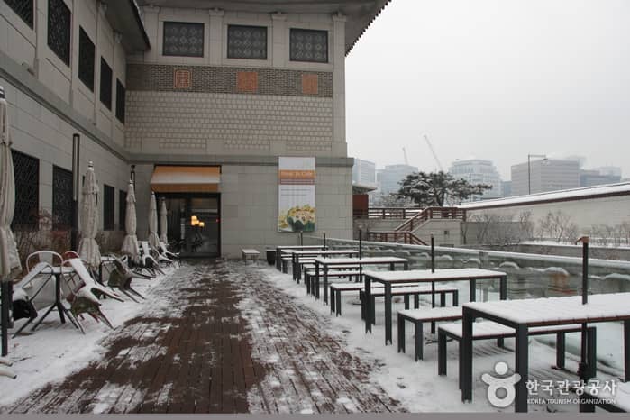 Located on the first floor of the National Palace Museum of Korea, Gogung Tteurak consists of a museum shop and a café. It is open from 9am to 10pm everyday except Mondays. The museum shop has on sale a variety of items with a traditional Korean flavor. You will find postcards, small pocket books, umbrellas, cushions, and T-shirts. Right next door, there is a café selling coffee, ginger tea, gukwacha (tea of a chrysanthemum), mogwacha (tea of a quince), as well as wild vegetable salad, royal tteokbokki, and royal noodles. Foreign visitors can choose the royal tteokbokki and other simple meals that are not too spicy.