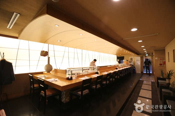 'Sushiko' is a Japanese restaurant featuring traditional Kyoto cuisine. The owner of Sushiko packed up his bags after having lived in Japan for a long time, and opened a restaurant with an elegantly refined interior, in Gangnam two years ago. All accessory articles and flower arrangements are designed with the Japanese style in mind, while the interior ambiance is enhanced by the dim lighting. The 1st floor of the 4-story building has a bar, where the chefs can be seen carving sashimi (Dachi), while the 2nd and 3rd floors house rooms able to accommodate anywhere up to 30 people. The restaurant fits the tastes of the younger generation as the basement floor harnesses a wine bar and fushion food. Sushiko serves a variety of cuisine including various sashimi, tuna sashimi, sushi, broiled eel, fried abalone, fried blowfish, and fried prawns.