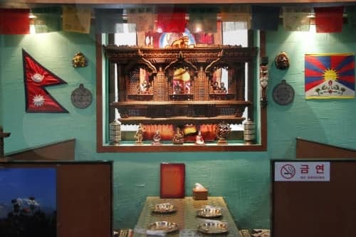 Nepal is located in the southcentral region of the Himalayan Mountains between India and Tibet, accounting for its diverse mixture of both country's cultures. 'Everest' allows guests to enter this culturally diverse world by offering cuisine from Nepal, India, and Tibet. In addition, 'Everest' is managed by a resident of Nepal, serving affordable food to tourists and students interested in the culture of Nepal. Customers can learn of the traditional food and culture of Nepal while listening to Nepalese music and watching movies. The restaurant also provides a seminar area for various meetings.