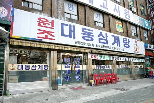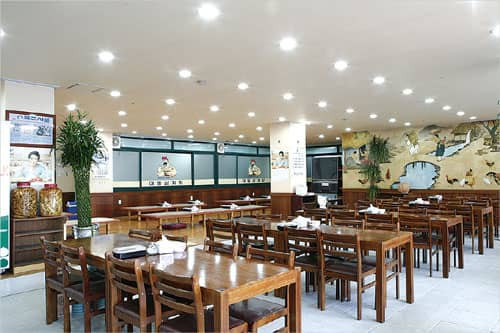 Thick and rich broth makes a good impression here. Boiled chicken with ginseng (Samgyetang) gives a soft and tender taste with glutinous rice, chestnuts, ginseng and Chinese dates. The rich flavor of ginseng liquor, fried chicken gizzard, cubed white radishes, cabbage kimchi, and garlic with Korean hot pepper paste makes this dish even better.