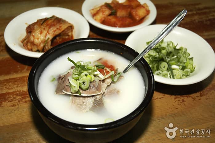 Imun Seolnongtang has been serving its hearty seolleongtang for nearly a hundred years since it first opened in 1907. Even its name has a long history: the word imun comes from Imun-gol, the now-obsolete name of the restaurant’s location, and seolnongtang, an old variation of the word seolleongtang. During the Japanese colonial rule, the restaurant’s regular customers included Gijeong Son, the marathon gold-medalist at the 1936 Berlin Olympics. To make the rich seolleongtang broth, beef meat and bones are simmered for more than 15 hours. Try putting rice and minced green onion in your seolleongtang for a warm and tasty experience. Kkakttugi (diced radish kimchi), provided as a side dish, is also delicious.