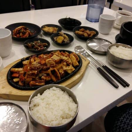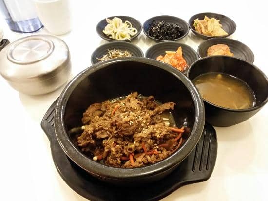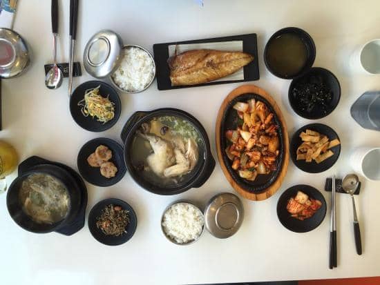 - Samgyetang (ginseng chicken soup), grilled chicken, dak-bokkeum-tang (braised spicy chicken), Tteok-galbi (grilled short rib patties), Bibimbap (mixed rice bowl)