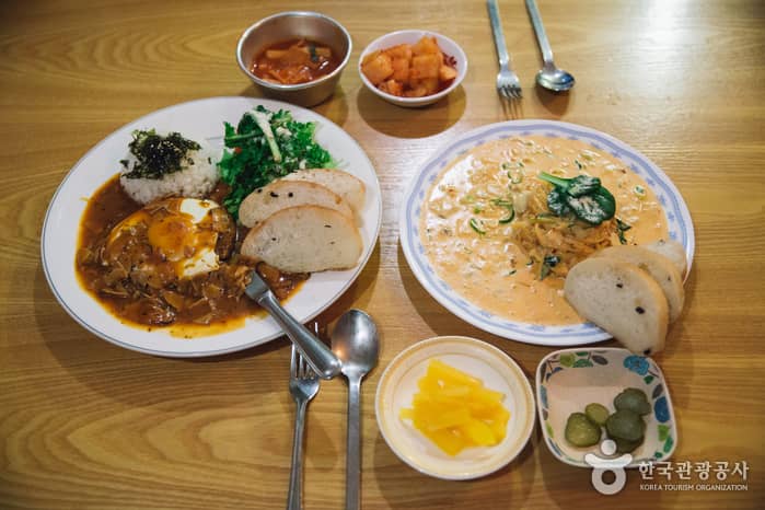Yoonssi Milbang first opened thanks to the owner's passion for food made of flour. It originally specialized in dumplings, but became well known for its hamburger steak.