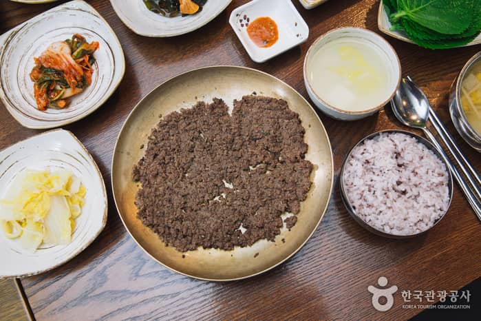 Yukjeon Hoekwan has served Bassak bulgogi and Seonji baekban (Korean set menu with blood cake) since 1962, opposite of Yongsan Station. It has kept its original taste through three generations of operations.