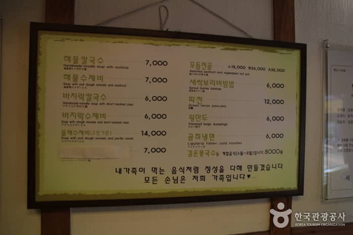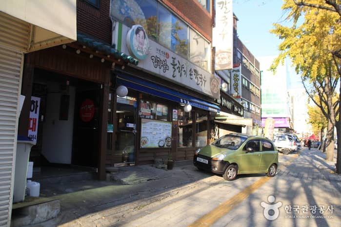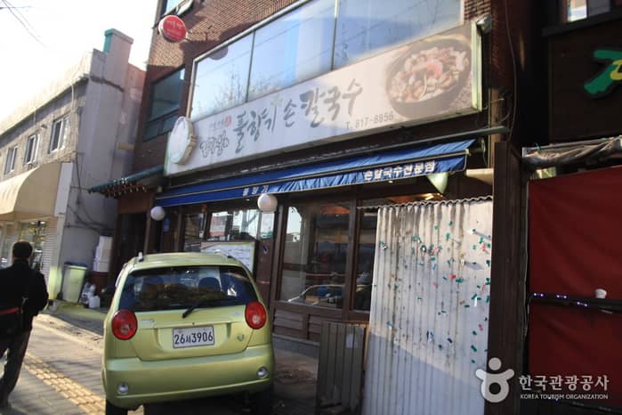 Kim Gwangbun’s Pulhyanggi Sonkalguksu boasts a taste made from 16 years of tradition in serving kal-guksu (handmade noodle soup). The menu includes haemul-kal-guksu (noodle soup with various seafood) and bajirak-kal-guksu (noodle soup with clams). One of its hidden secrets to attract people is the meat broth boiled for four to seven hours. Also, the wang-mandu (big sized dumplings) and kimchi are special points at this restaurant. To keep the best freshness, the owner, Kim Gwangbun goes to the fishery market in person to select the ingredients for the day's meals at dawn. The restaurant is comprised of one main two-story building as well as an additional building.