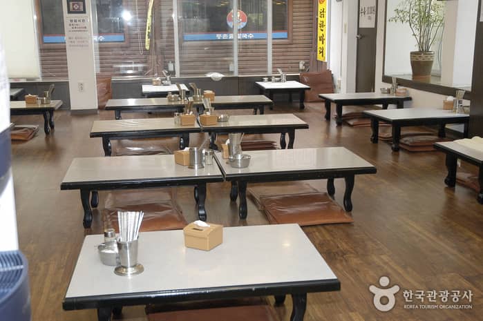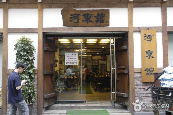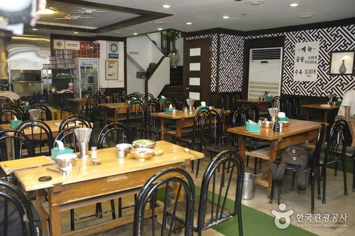 Hadongkwan is a 70-year-old restaurant in Myeong-dong, Jongno-gu. This restaurant first opened in the 1930s, and serves only two items: Gomtang and Suyuk. And there are only two side dishes: kkakdugi (radish kimchi) and kimchi. Unlike other restaurants, Hadongkwan serves its soup in a brass pot. The broth of the soup seems thin but the taste is delicious and thick. The soup is made of 100% natural ingredients and free of artificial additives.