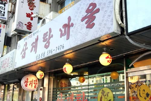 Samgyetang Maeul is a restaurant that has passed down the secrets of its delicious Samgyetang (chicken ginseng soup) for three generations. Praised for its rich and delicious broth, the restaurant is also known for the unique way it cooks its rice. Instead of cooking the rice in the chicken (the typical method of preparing samgyetang), the rice is boiled in the broth, resulting in a soft, almost porridge-like rice that complements the tender chicken.