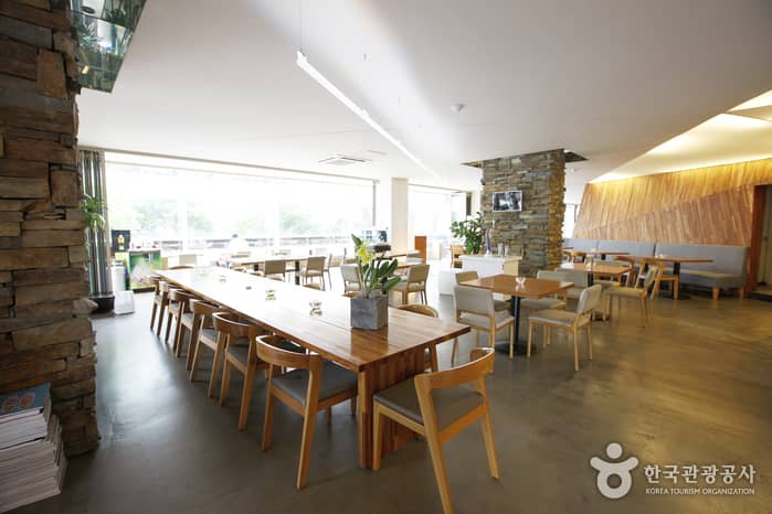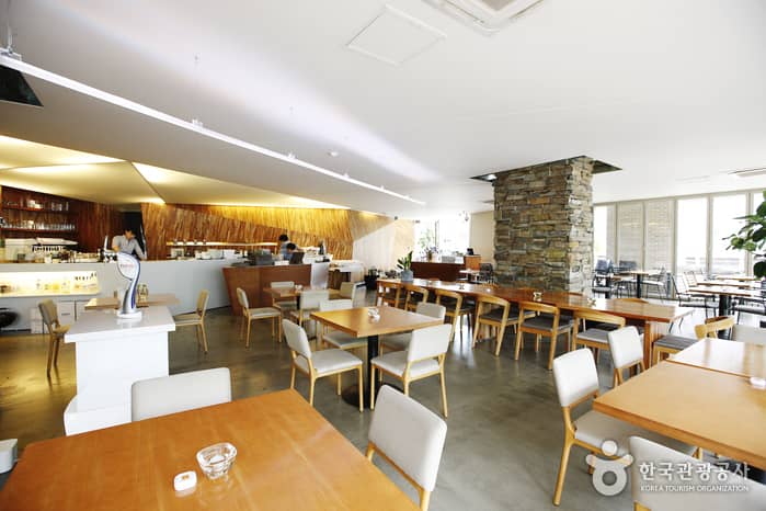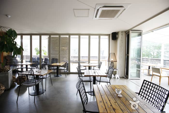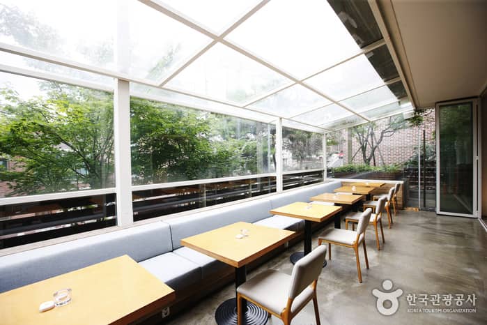 Located in Dongsung-dong, Jongno-gu, Seoul-si, Namu (나무) is a dining café with a relaxing and casual atmosphere. Inspired by the novel, ‘My Sweet Orange Tree’ the café seeks to give visitors a sense of comfort, just as the tree in the novel gave the main character, Jeje. The café has a wide terrace of more than 300 m² and features a simple yet sophisticated interior design particularly beloved by its female customers. At the café, you can enjoy both meals and dessert/coffee. After 9:00 pm, the ambience of changes as the lights dim and wine and cocktails are served.