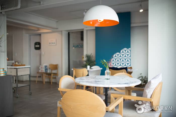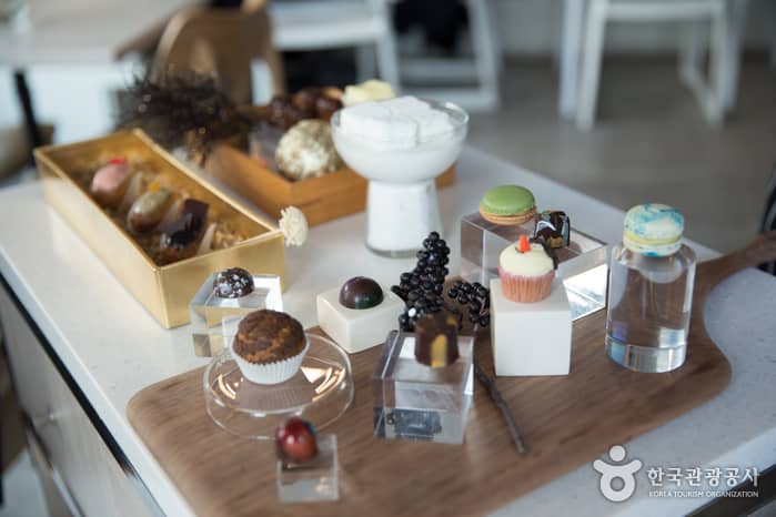 Located in Shinsadong's Garosu-gil, Sona offers pleasure to both eyes and taste buds. With a hint of traditional French collaborated into American-style desserts, an expert patisserie prepares a dessert course on the spot.