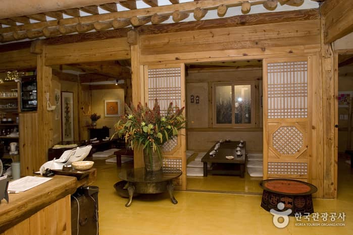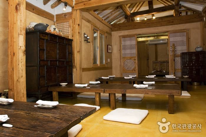 Nwijo (뉘조) is a Korean restaurant specializing in wild vegetable cuisine. The name ‘Nwijo’ means ‘the god of the silkworm,’ and likens wild vegetables to silkworms in that both can be eaten in their entirety. The restaurant serves original full-course Korean meals that are prepared using hundreds of kinds of wild vegetables, including special seasonal vegetables.A typical full-course meal starts with delicious pumpkin porridge, followed by seasoned wild vegetables, root vegetable ssam (condiments wrapped in vegetable leaves), slices of boiled meat, and steamed lotus leaf-wrapped rice served with jjigae (Korean stew) and various side dishes. This kind of traditional feast is pleasing to both the eye and the palate and is topped off with sikhye (traditional sweet rice drink). Lunch specials are also available.