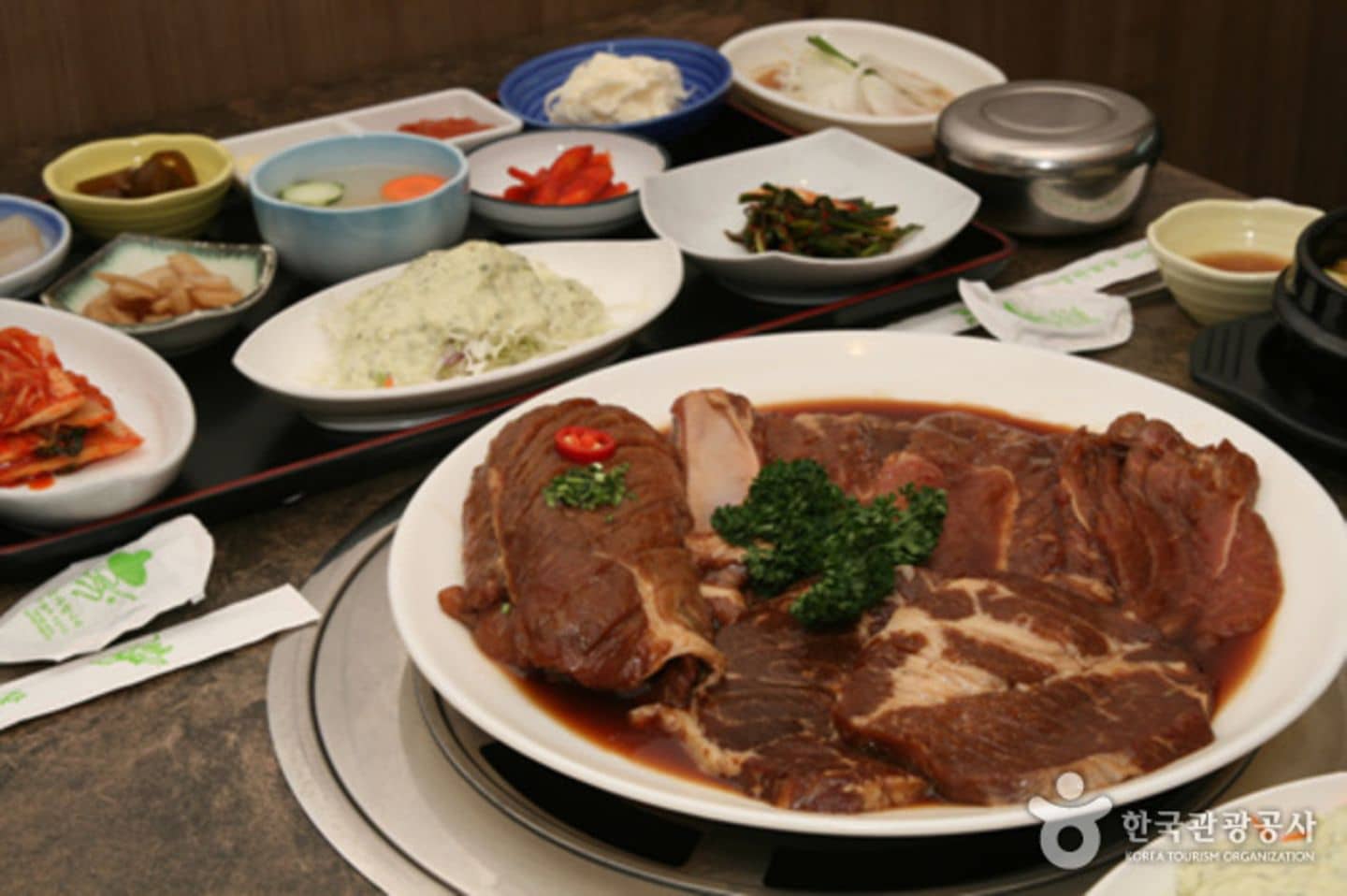 This galbi restaurant is located in Taeneung where the popular dish, Taeneung Pork Galbi originated. Equipped with the original charcoal roaster, it smells less when you grill the pork or beef galbi at the table