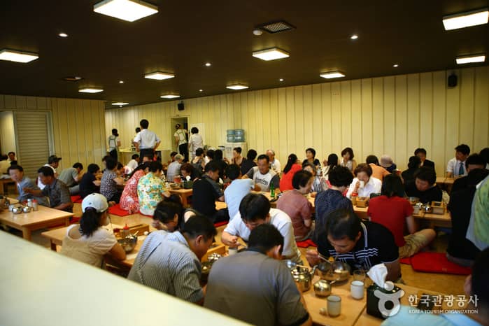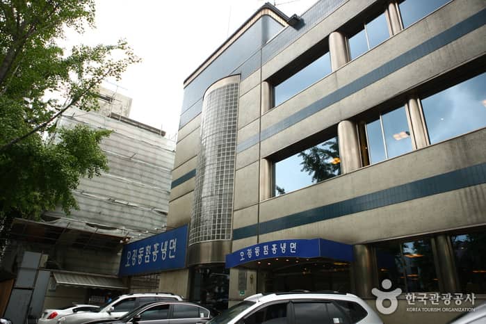 Ojangdong Hamheung Naengmyeon’s feature menu item is Hamheung-naengmyeon (Pyeongyang-style chilled buckwheat noodles), a delicacy of North Korea’s Hamgyeongdo region, and has continued to receive wide popularity since 1953. Their diverse menu consists of Hamheung-naengmyeon, mul-naengmyeon (buckwheat noodles in a chilled broth), wangmandu (large steamed dumplings), and more. Hamheung-naengmyeon is a specialty dish that was passed down from Hamgyeongdo long ago, where the cold noodles are made with starch, then mixed with red pepper paste and raw skate. If the dish is too spicy for your taste, try eating it with muchojeorim (shredded radish in vinegar) to cool your tongue. The muchojeorim is a side dish that can be refilled, free of charge. Other popular menu items include mul-naengmyeon, bibim-naengmyeon (cold buckwheat noodles mixed with red pepper paste), and the enormously large wangmandu stuffed with meat and vegetables.