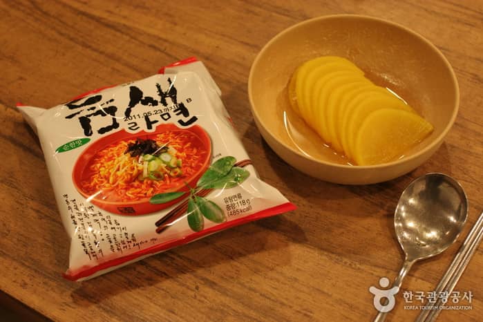 (2) Try putting some cold rice in your ramyeon for an interesting, less spicy taste.