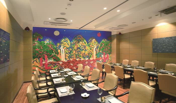 Daejanggeum serves traditional Korea meals, reinterpreting royal dishes from the Joseon Dynasty. Daejanggeum faithfully uses only the best local ingredients to make all their food, from the soybeans used for soy sauce and soybean paste, to kimchi. In addition to the food, guests can enjoy dining with lacquerware from Korea's Holder of Intangible Heritage, Mr. Yi Jin-ho, and forged works by 5th generation blacksmith, Cha Ingyu.