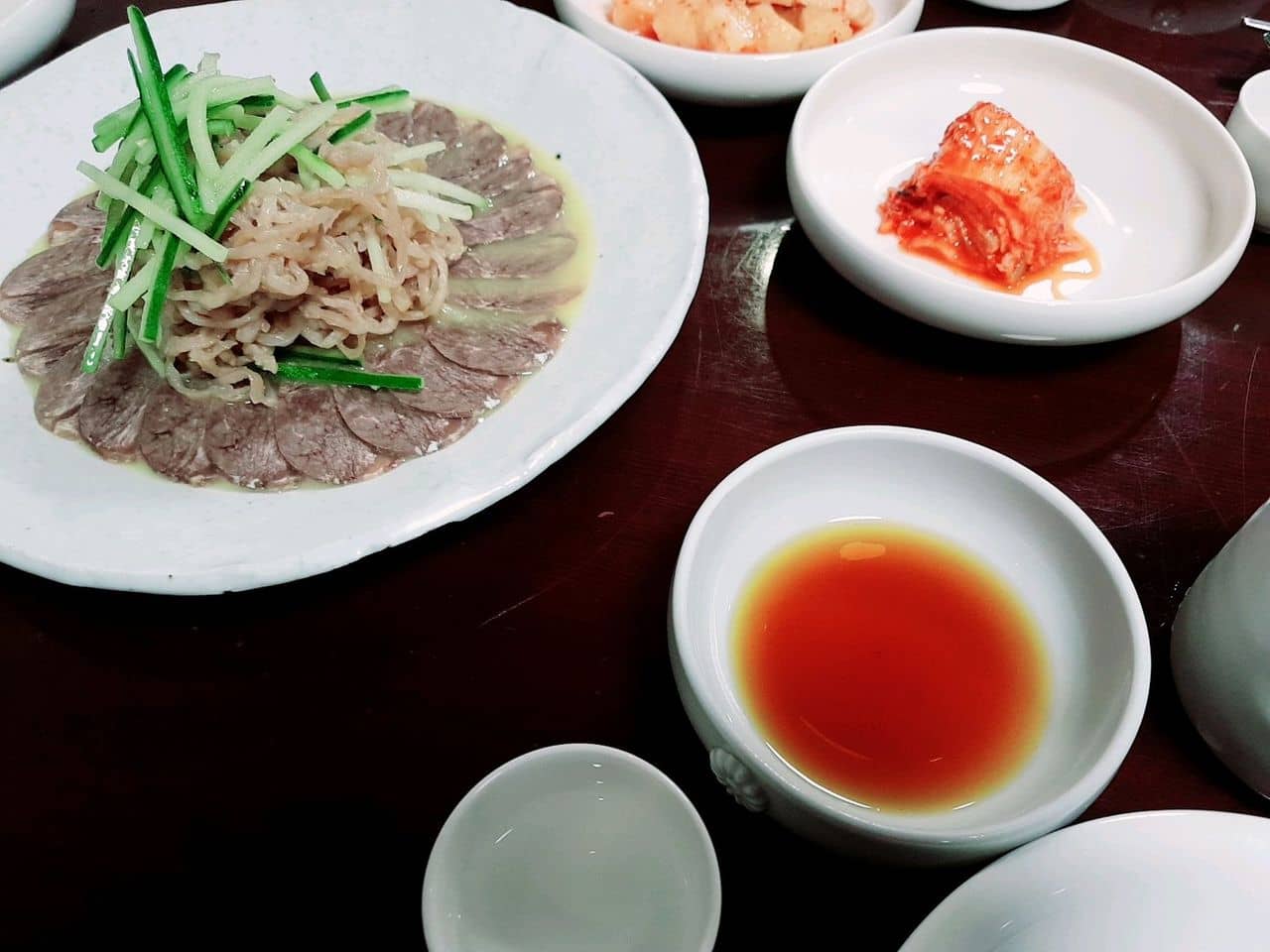 Main dishes include mul mandu (boiled dumplings), Pyeonsu (dumplings stuffed with meat, mushrooms, cucumbers), kimchi mandu and mandu jeongol (dumpling hot pot). In addition to mandu, there are bindaetteok (mung-bean pancakes) and kongguksu (noodles in cold soybean broth). Unlike other mandu restaurants, Jaha Son Mandu features a course meal named “Jaha Sangcharim.”