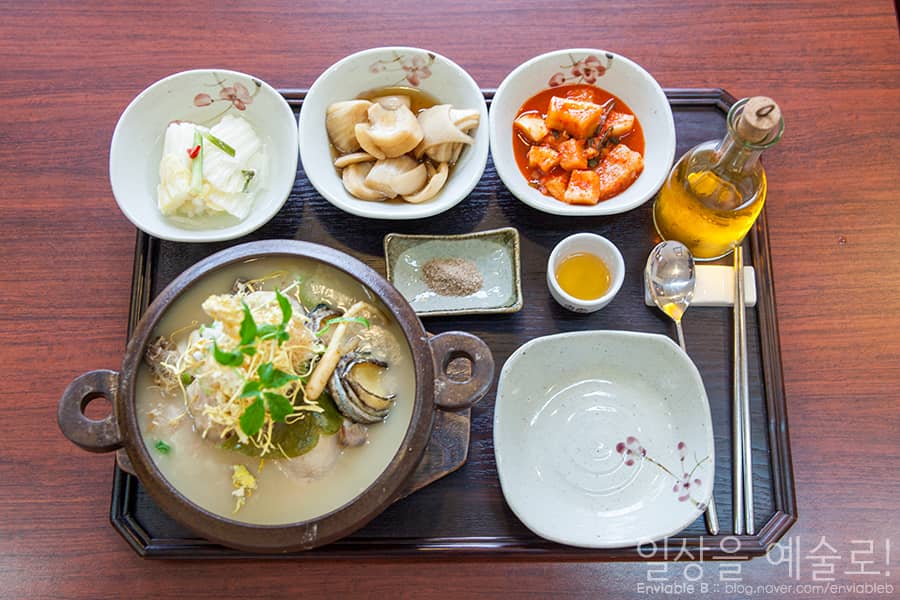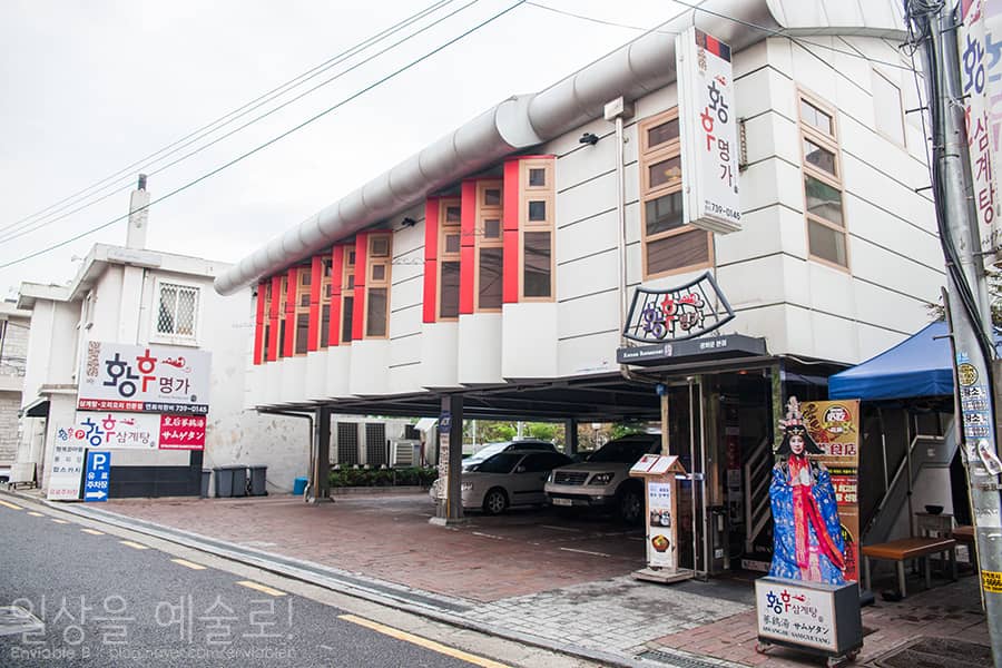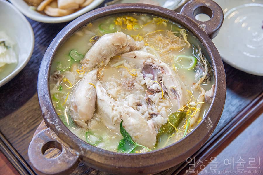 Whated a well reccommended place to try the famous Samgyetang dish. To find this place, come out of Gyeongbokgung Palace main front gate, turn right and take the next right ( down the side of the walls). Take the third road on the left and the restaurant is on the left just before the junction.