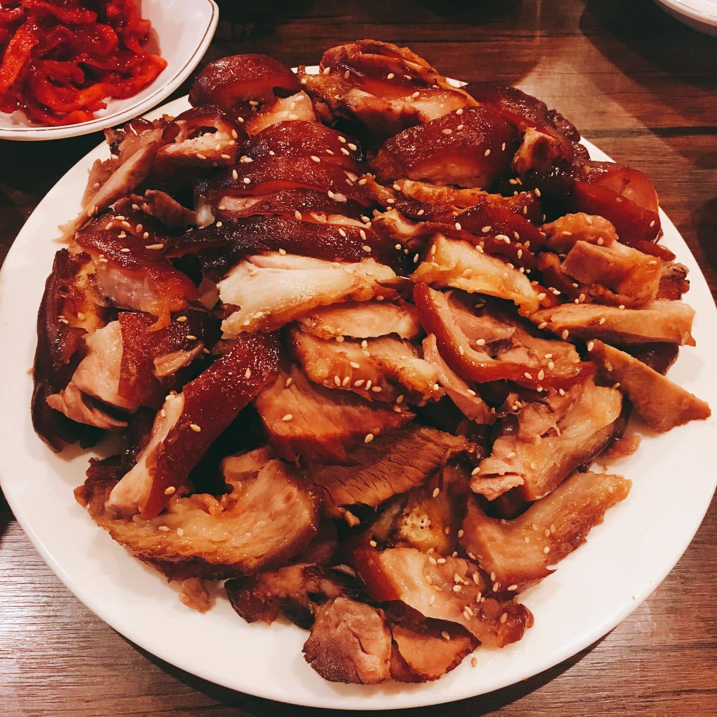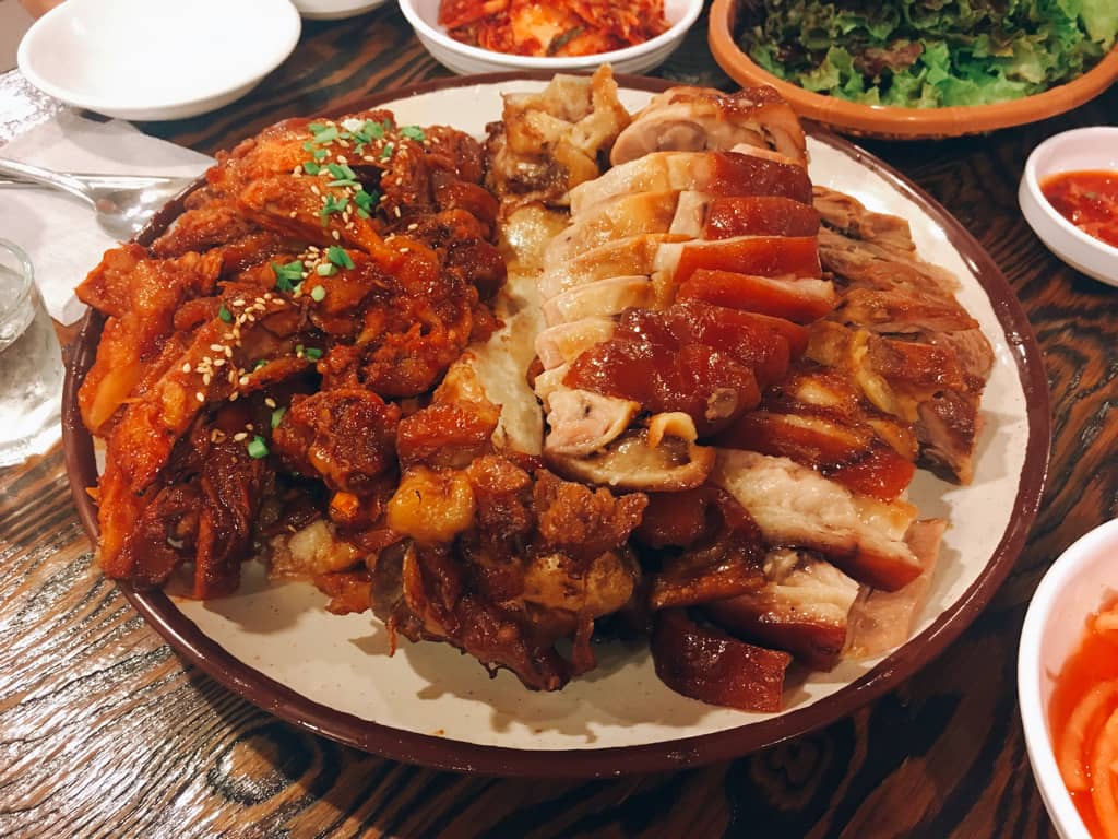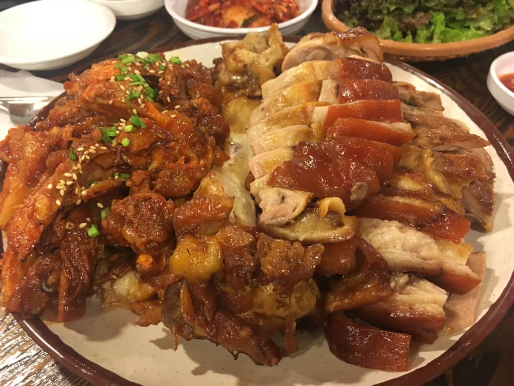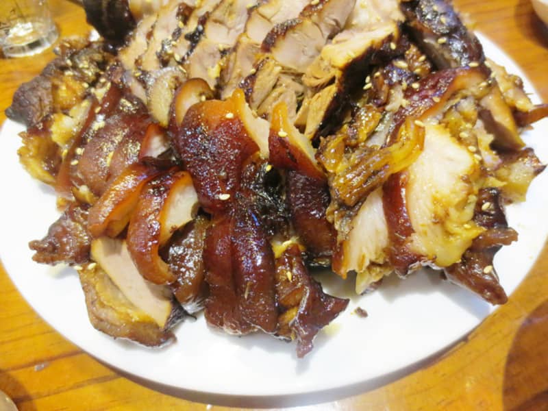 The meat was tender and nicely marinated, with the right amount of fat and tendon. The garlic vinegar with shredded cabbage dipping sauce was wonderful with the jokbal.