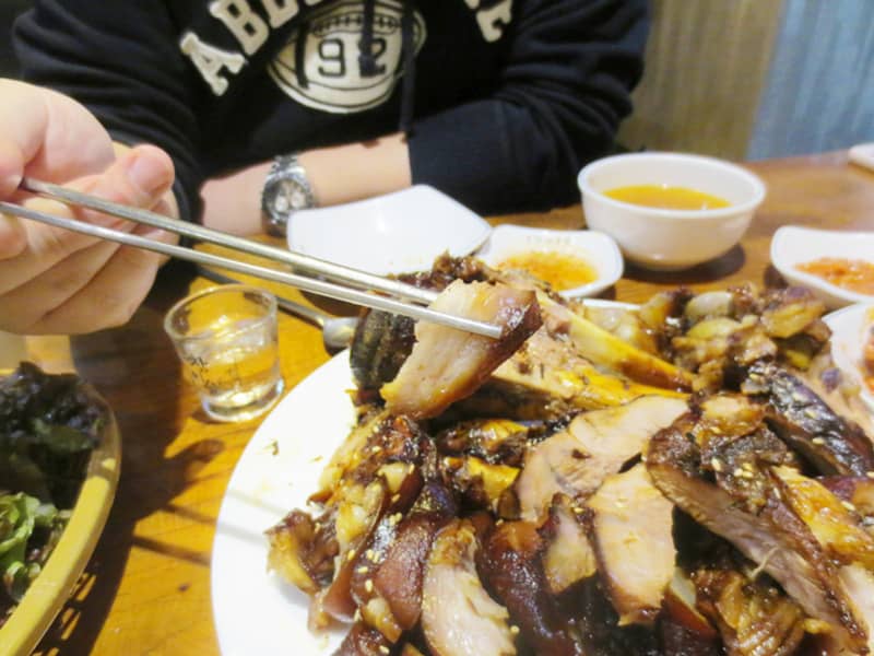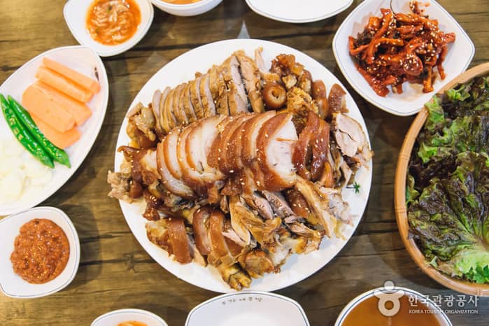 Even though Ogane Jokbal is delicious enough to prospered into a multi-branched enterprise, the restaurant choose to operate and focus on a single branch to keep and develop the qualified, consistent taste of Jokbal (pig trotters). The chewy and soft texture of jokbal is a popular menu, as well as bossam (vegetable wraps with pork) and makguksu (spicy buckwheat noodles).