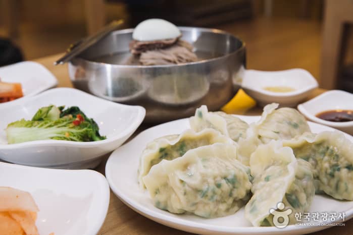 Jungin Myeonok offers Pyeongyang-style naengmyeon (cold buckwheat noodles), passed down to the owner from parents who came from North Korea.