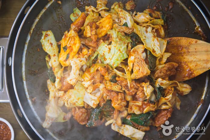 Ogeunnae, the old name for Chuncheon, features Chuncheon-style dakgalbi (spicy stir-fried chicken) using only fresh leg meat of chickens which give a soft and elastic texture.