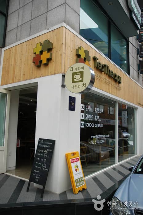 Turning away from the conventional concept of a tea shop, Tea Therapy offers not only healthy tricks for home-brewed teas but also a relaxing foot bath experience. The shop aired on KBS's "Muhanjidae Q" due to its interior design and unique programs available where visitors can enjoy a tasty cup of tea but also rejuvenate by meditating, consulting with a professional dietitian, trying blending their own tea and more. The tea selections and dessert menu items are plentiful, providing international visitors with a chance to become easily acquainted with Korea's tea culture.