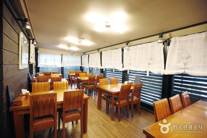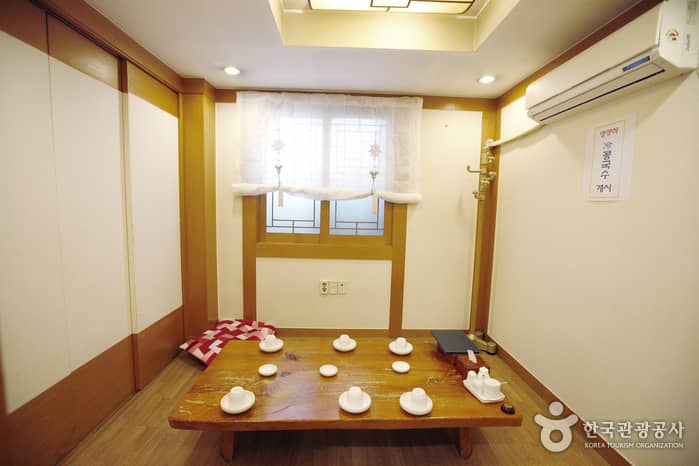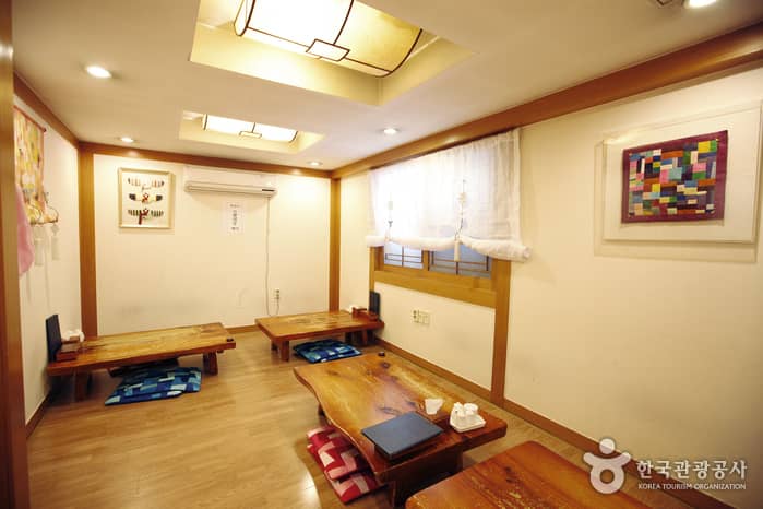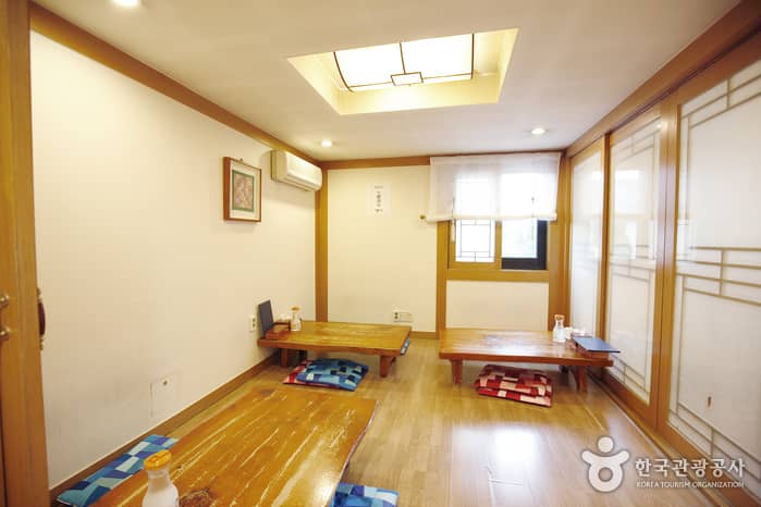 Hwangsaengga Kalguksu (formerly 'Bukchon Kalguksu’) is one of the most popular restaurants on Samcheongdong-gil. The street in front of the restaurant is always crowded with cars and there are almost always people lined up outside the restaurant. The main dish is Kalguksu (noodle soup) with rich, mild broth made from ox bone. Homemade ‘wang mando’ (king-sized dumpling) is another specialty and you can even see workers making them at the entrance of the restaurant. Other dishes such as Modeumjeon (assorted pan-fried delicacies) and Bossam (napa wraps with pork) are also available.